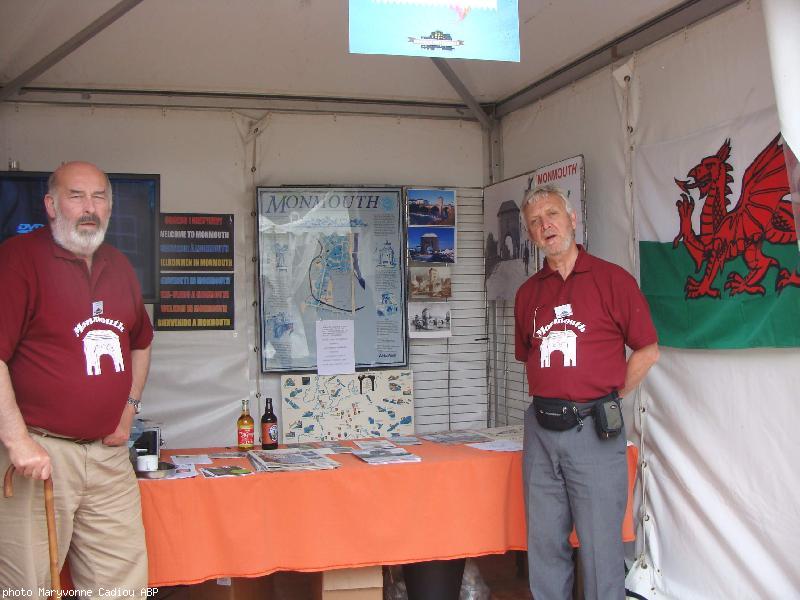 Richard Bond et Chris Munslow, conseillers municipaux, sont venus en “volonteers” (bénévoles) promouvoir leur ville de Monmouth, leur pont, le Monnow Bridge, et leurs produits, essentiellement bière et cidre (1) – ils étaient d'ailleurs en rupture de stocks... Arrivés vendredi 28 mai, ils repartaient le lundi suivant « by Brittany Ferries of course ! ».