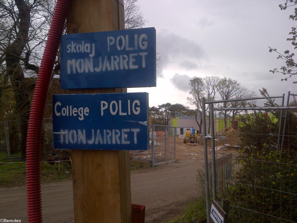 Après une âpre lutte pour faire taire les rumeurs diffamatoires, suite à une campagne de débaptisations de noms de lieux publics http://poligmonjarret.over-blog.com/, menée par Bemdez en guise de miroir brandi à la face des détracteurs de Polig Monjarret, nom humblement et logiquement choisi pour ce collège par le mairie de Plescop, des panneaux de signalisation validant l'appellation du futur collège (photographies en pièces jointes) sont apparus devant les bâtiments en construction.