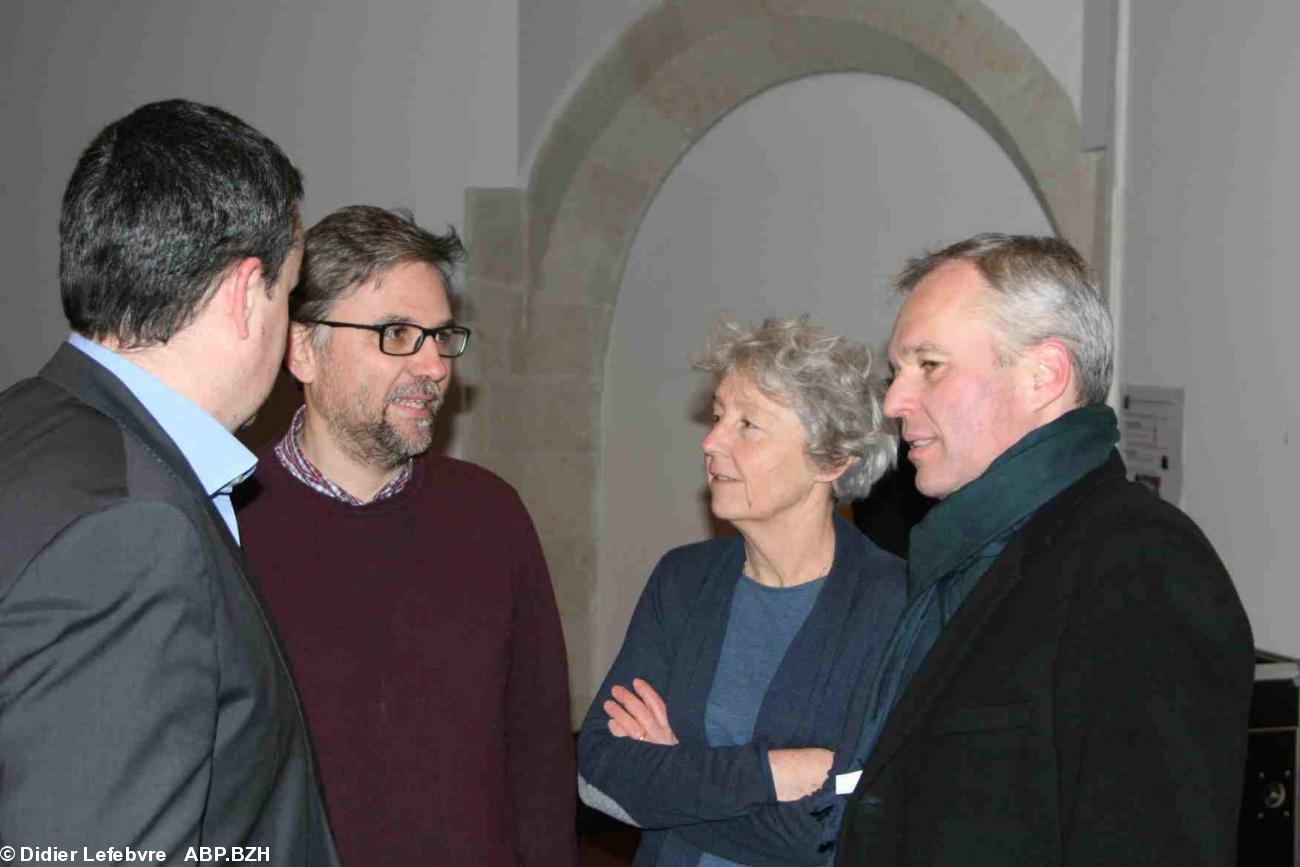 Dans son discours, Olivier Château insiste sur la politique culturelle de la ville, dont l’objet est de faire vivre la diversité culturelle de la ville, et des actions engagées en faveur de la langue bretonne, dans le cadre de la charte Ya d’ar Brezhoneg, signée le 6 avril 2013 (1). Discours conclu par un « Bloavezh Mat » apprécié. Pierre-Emmanuel Marais, fidèle à son habitude, n’oublie pas de traduire en langue française son discours prononcé en breton. "Elles [ces plaques] nous disent d'abord l'histoire de notre ville où le breton a toujours été parlé - de façon le plus souvent minoritaire, voire caché - mais toujours vivant. C'est le cas aujourd'hui avec le dynamisme des écoles bilingues, l’action des nombreuses associations culturelles fédérées par l'Agence culturelle bretonne, le Centre culturel Yezhoù-ha-Sevenadur, Kentelioù an noz, hag all..." Tout le monde est heureux d'entendre ce qu'il était venu chercher ". Elles nous disent aussi la singularité de notre Ville, capitale de la Bretagne". Voir les textes en PDF.Interview de Olivier Château, adjoint en charge du Patrimoine