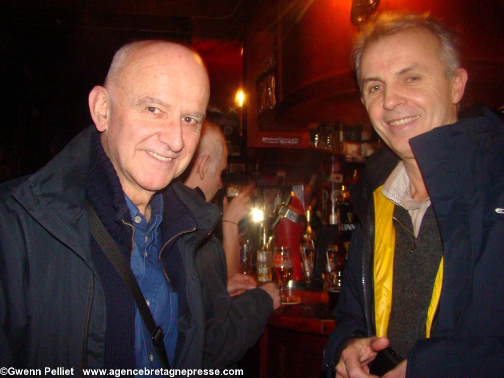 Dan ar Braz et Jean Nozac\'h (Président du Bagad Kemper) en conversation au bar du Ceili