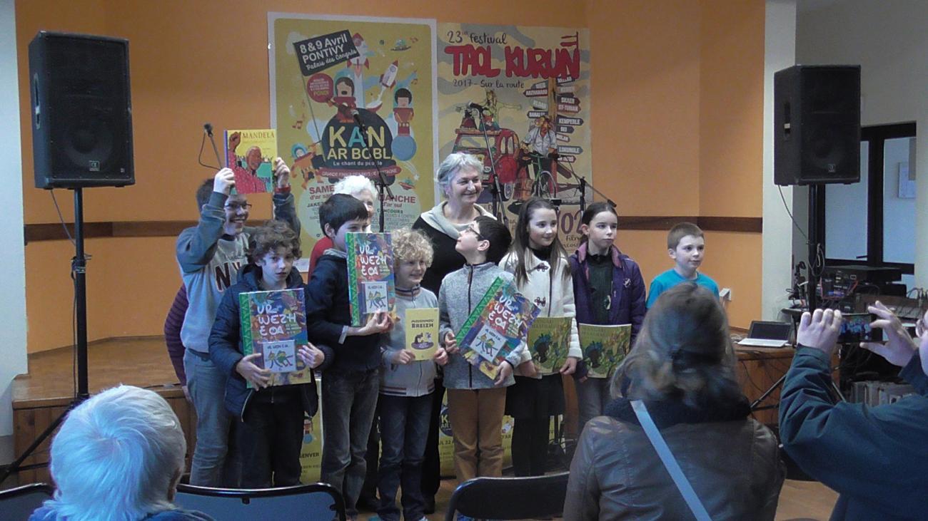 E galleg e oa bet kontet daou istor gant Maryse, met mod-all, pep tra e brezhoneg gant plijadur hag aked er sal. Gant ma vo hadet danvez konterien evit an dazont !