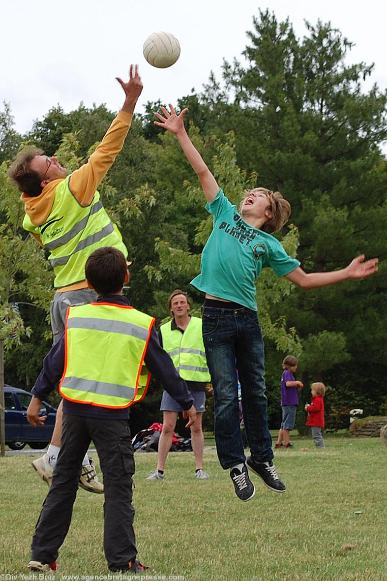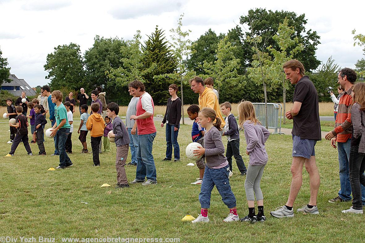 Après un pique nique en famille à Bruz, L'Entente Gaélique de Haute-Bretagne a permis aux élèves de l'école Jacques Prévert de la section bilingue français - breton ainsi qu'aux parents de découvrir et goûter aux plaisirs du football gaélique.