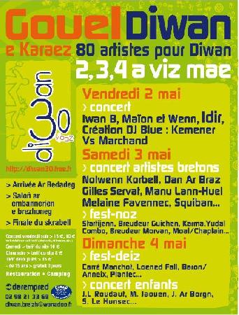 Le 4 mai : concert enfants : J.L. Roudaut, Mona Jaouen, Sofi le Hunsec… Fest Deiz : Carré Manchot, Loened Fall, Plantec, Baron/ Anneix… Durant les 3 jours des débats, des expos, un match de football gaélique, un salon des éditeurs en langue bretonne… et d'autres surprises comme « L'hymne à la Joie » chanté en breton par une chorale.
