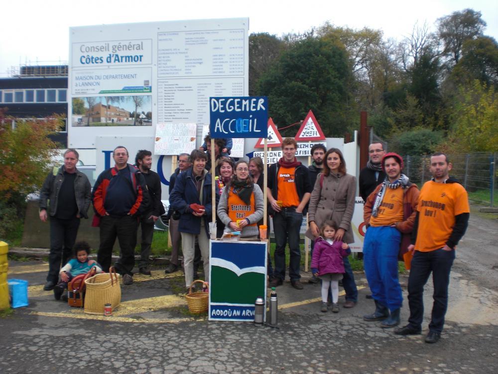 Plus de 20 militants et sympathisants d'Ai'ta ! s'étaient rassemblés hier matin devant le chantier de la future Maison du Département de Kermaria à Lannion. Une demande commune : que la langue bretonne y soit prise en compte et valorisée !