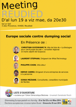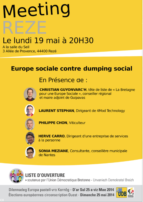 Dans le cadre des élections européennes, la liste "la Bretagne pour l'Europe sociale" organise une réunion publique à Rezé. Notre tête de liste, Christian Guyonvarc'h, sera présent et interviendra en