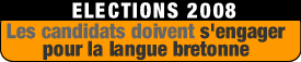 Agissez pour la langue bretonne ! Dans votre commune, utilisez le pour interpeller tous les candidats aux élections municipales. C'est la survie de notre langue, de notre culture, qui est en jeu. Exigez des candidats qu'ils s'engagent pour la langue bretonne.