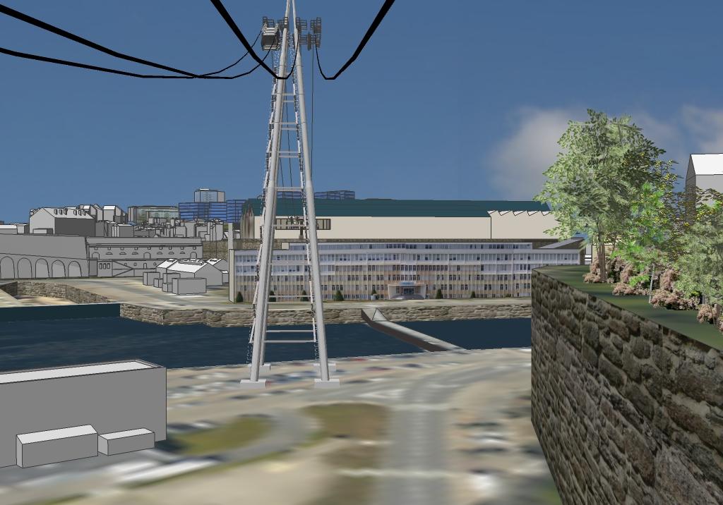 Plusieurs solutions ont alors été envisagées : pont transbordeur, pont routier levant, passerelle levante... des projets se chiffrant entre 60 M€ et 23 M€. Finalement l'idée d'un transport par câble s'imposa, de par son originalité, de par également son moindre coût, environ 15 M€.