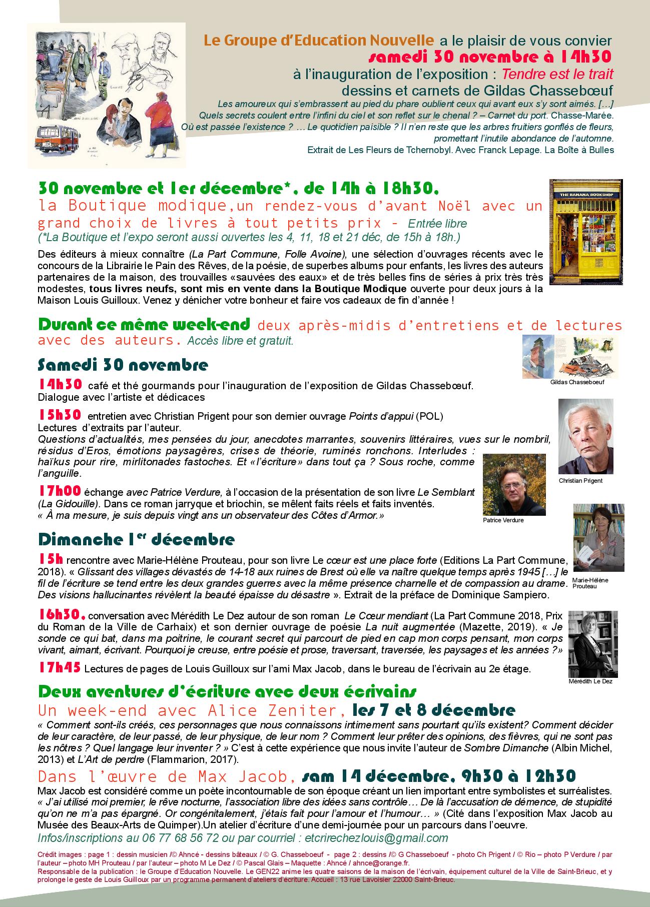 A l'occasion de la Boutique modique, livres pour Noël ouverte, les 4, 11, 18 et 21 décembre, la maison Louis Guilloux invite 4 auteurs à présenter leurs livres, samedi 30 novembre et dimanche 1er décembre.