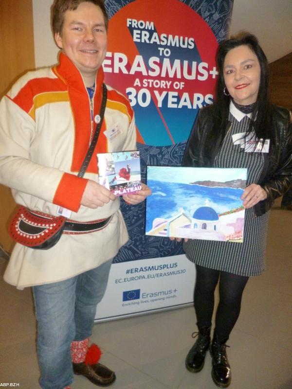 Sylvie a ainsi fait la connaissance d'Ande Trosten, un Norvégien de 26 ans appartenant à la minorité indigène des Sami. Venu en costume traditionnel sami, ce pétillant participant a expliqué avoir effectué un stage Erasmus Jeunesse en Allemagne (Hanovre) afin de sensibiliser les gens aux effets du changement climatique dans la région de l'arctique. Mais ce qui le passionne le plus ce sont les langues régionales et minoritaires et, de retour dans son pays natal, il y enseigne d'ailleurs le sami. « Ande voulait savoir d'où venait le breton, comment il se prononçait et s'il était éloigné du français. J'ai pu lui dire quelques mots, pour son plus grand plaisir » raconte Sylvie.Même si la Norvège ne fait pas partie de l'Union européenne, elle participe au programme Erasmus+. Elle est d'ailleurs très active et a à coeur de trouver des partenaires bretons pour monter des projets conjoints dans le cadre de ce dispositif phare.