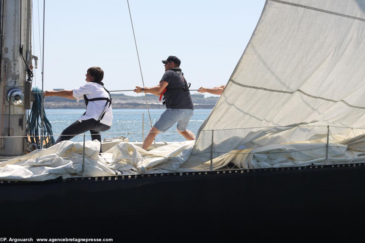 Plusieurs milliers de personnes étaient venues à la cité de la voile Eric Tabarly à Lorient hier pour accueillir, sous un soleil magnifique, les 5 "Pen Duick" mythiques d'Eric Tabarly