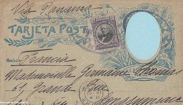 La fabrication date du mi-XIXe. Ce sont des enveloppes Marion, du nom de l'imprimeur de Paris. Fut un temps où le courrier voyageait sans enveloppe. Avec un timbre. Mais, pour l'envoi des courriers recommandés, la nécessité du " cachet de la poste faisant foi " est apparue. Le trou en haut à droite permettait d'oblitérer le document sans que le son contenu en soit dévoilé. Après leur disparition, elles ont réapparu en 1902, pour l'expédition de cartes postales, timbrées en face du trou, Double avantage : les cartes étaient protégées et elles ne pouvaient être lues par personne avant d'arriver au destinataire. Leur disparition est une énigme mais pas sa date : 1939.Le Musée de l'Imprimerie