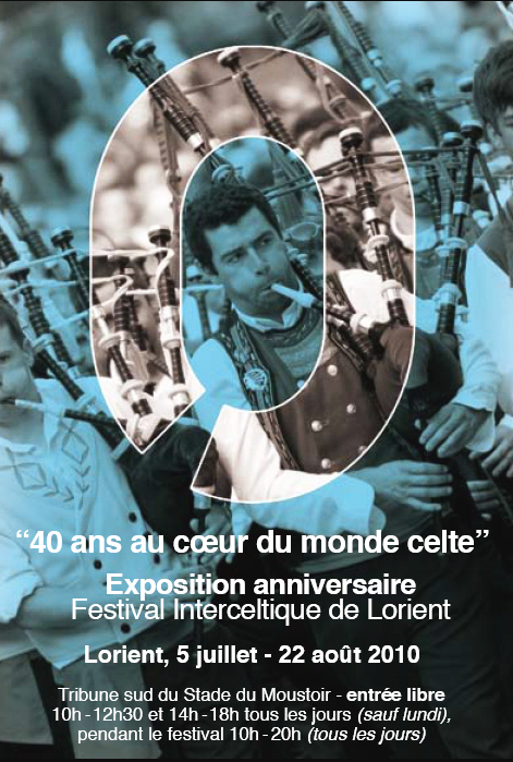 40 ans au coeur du monde celtique. Du 5 juillet au 22 août 2010. Tribune sud du stade du Moustoir. Entrée libre. Résumé en breton et en anglais inclus dans chaque panneau.