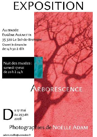 Noëlle Adam rend hommage à Eugène Aulnette au travers du thème de l\'arbre avec une série de photographies intitulée “Arborescence” Elle nous parle ainsi de son travail : « Je photographie les choses proches et simples à la recherche des matières et des structures, des rythmes visuels. Cette recherche m\'amène à une vision assez abstraite, l\'essentiel est la lumière, la forme, la couleur. De façon inhabituelle puisque je travaille plutôt par série homogènes, j\'ai choisi de présenter un parcours transversal à travers différentes périodes et séries ; afin d\'être en harmonie avec le lieu dédié à la mémoire du sculpteur Eugène Aulnette, c\'est un chemin planté d\'arbres. Arborescence, c\'est ce choix du thème de l\'arbre et aussi ma façon d\'explorer et d\'expérimenter dans le monde de la photographie. Les photographies vont d\'images presque classiques à une recherche aujourd\'hui plus épurée, quasi-abstraite. » Parallèlement à cette exposition temporaire, les œuvres du sculpteur Eugène Aulnette, d\'inspiration bretonne et religieuse, sont visibles à l\'étage du musée Tous les dimanches de 14 h 30 à 18 heures.Ouverture exceptionnelle de 20 heures à minuit samedi 17 mai dans le cadre de la nuit des musées. Contacts : 02 99 43 14 40