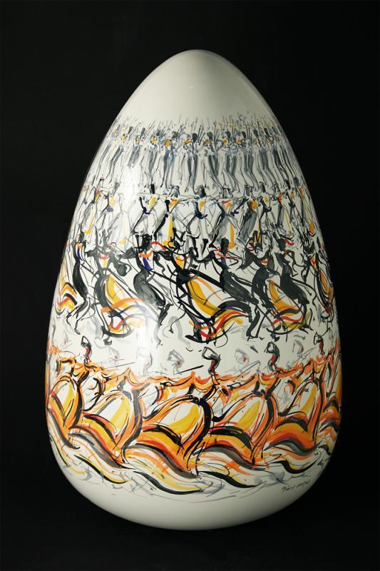 La Manufacture Henriot-Quimper poursuit son cycle d'expositions d'artistes avec Michel Costiou. Le plasticien connaît bien la Faïencerie puisqu'il y a déjà créé plusieurs décors : Celtigraphie, Ombre d'Argent... et deux séries de pièces uniques sur faïence. Le plasticien a choisi le thème de l'½uf, symbole de la création, de la naissance et de la renaissance continue. Du très grand au plus petit, évidés, sculptés, assemblés, décorés, l'artiste les a utilisés comme pièces scéniques pour une danse ludique, dynamique et colorée. Ces créations uniques sont complétées de peintures et dessins sur les mêmes thèmes. Galerie de la Manufacture Henriot-Quimper Du 22 mars au 10 mai 2014 du mardi au samedi de 10h à 12h et de 14h à 18h. Entrée libre