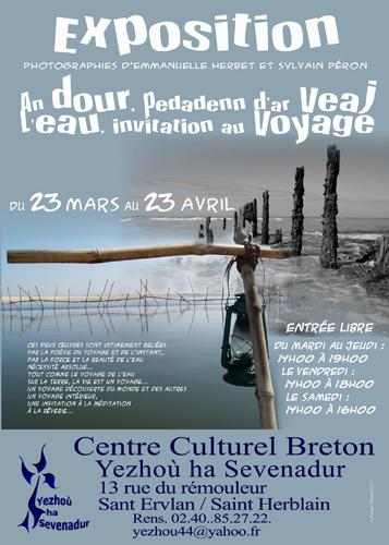 Nous sommes heureux de vous inviter au vernissage de l'exposition « L'eau, invitation au voyage », photographies d'Emmanuelle Herbet et Sylvain Perron, le Mardi 22 Mars entre 19h00 et 21h00 dans nos locaux, au Centre Culturel Breton Yezhoù ha Sevenadur, 13 rue du Rémouleur, à Saint-Herblain.
