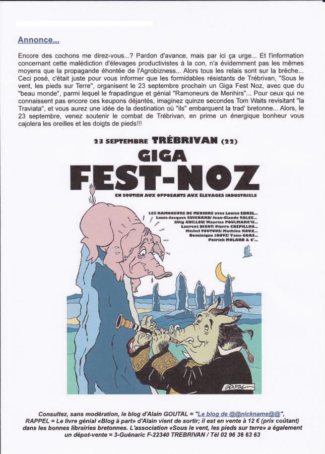 Ceci posé, c'était juste pour vous informer que les formidables résistants de Trébrivan, "Sous le vent, les pieds sur Terre", organisent