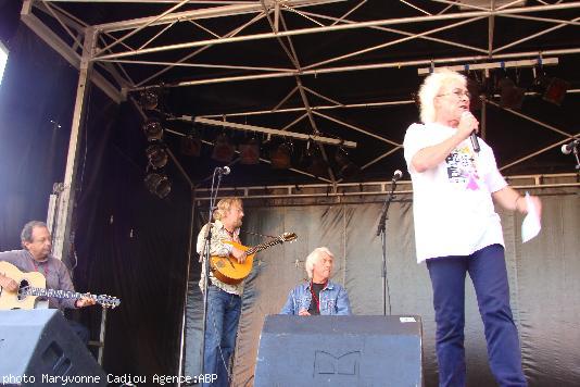 - Jean-Louis Jossic prend la parole avant la prestation de <i>Tri Yann</i>.