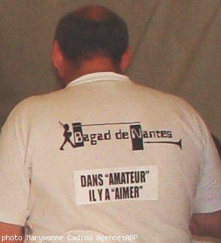 La “Festi” démarra avec le Bagad de Nantes, qui, lui non plus, ne manquait pas d'humour et revendiquait par T-shirts interposés. Anthony Jezequel le dirigeait avec une énergie à revendre. « C'est un de la bande de drôles » déclara Donatienne Jossic, (sonneuse de cornemuse débutante, porte-drapeau du bagad et sœur de Jean-Louis), « ceux à qui, nous les aînés, allons passer le flambeau. Notre penn soner est Jean-François Stephan, un super sonneur de cornemuse ; de plus il écrit des partitions et fait des arrangements de partitions à merveille. » ajouta-t-elle. http://bagadnantes.free.fr/ du Bagad de Nantes.