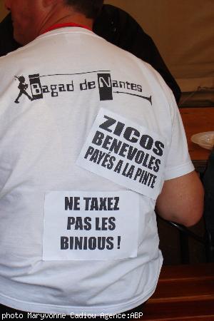 - Le Bagad de Nantes avait tombé le gilet de velours noir pour exhiber les T-shirts du bagad version humoristico-revendicative.