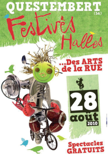 Informations pratiques De 10 h à minuit : spectacles permanents, spectacles déambulatoires et animations fixes dans le centre-ville de Questembert (Morbihan) avec vingt compagnies et plus de 100 artistes. Concours d'effouche-pichons (épouvantails). Marché du terroir et marché de l'art. Les spectacles sont entièrement gratuits. A 19 h, soirée moules-frites avec feu d'artifice. Tél. 02 97 26 56 00 http://festiveshalles.webnode.fr