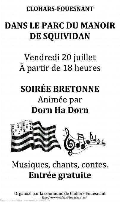 L'Association Dorn ha Dorn, créée il y a 10 ans, basée à La Forêt-Fouesnant, présidée par Yannick Beaugeard, organise le 20 juillet dans le manoir de Squividan à Clohars-Fouesnant, en partenariat avec la Commune de Clohars-Fouesnant, une fête bretonne, avec musique (atelier bombarde, atelier accordéon), chants, danses, sonneurs.