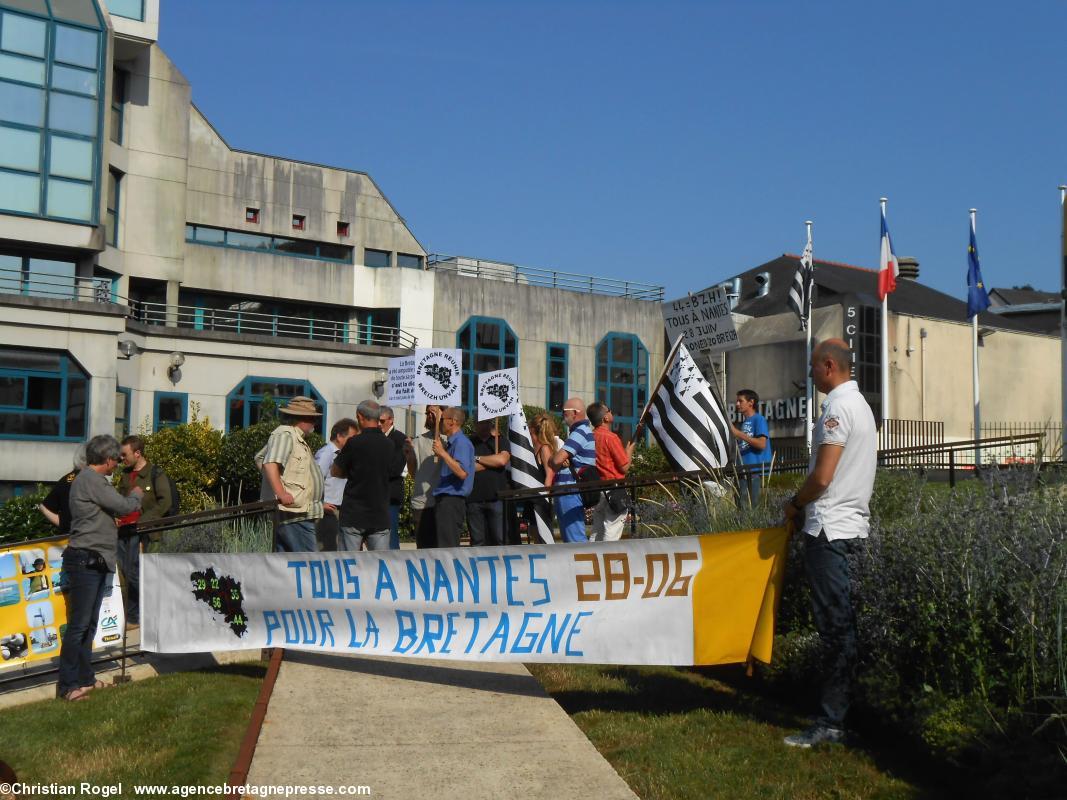 Devant le Conseil général du Finistère, une flash-mob pour appeler à la manifestation qui aura lieu à Nantes, samedi 28 juin et, avant, un réveil musical pour le préfet du Finistère.