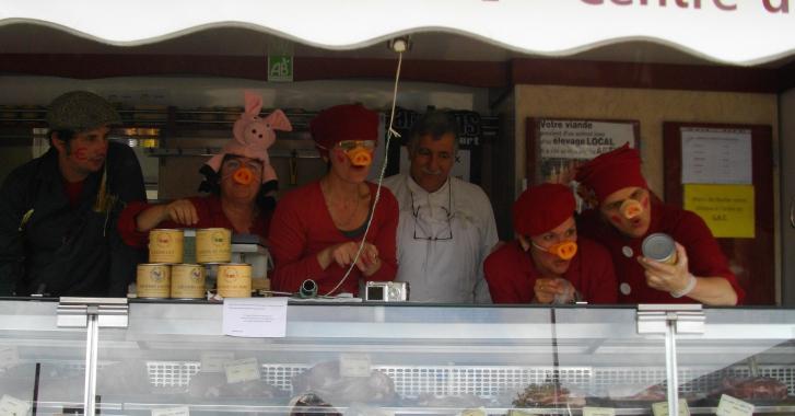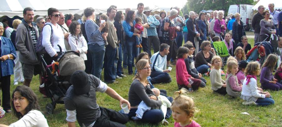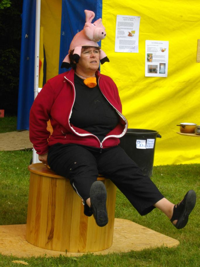 Dehors, les enfants apprennent à grimper de gros blocs de granite, certains s'amusent dans une aire de jeux pleine de paille (ça change des piscines de boules en plastique...). Dans la yourte Elisabeth Troestler conte ses histoires de l'an 2050 quand les grands mères vivent dans des bulles de plastique de centres de recyclage et se nourrissent de dessins d'enfants. Les truies du porcher sont installées dans la boutique ambulante du CAT de Scaer qui vend du cochon bio, et la brigade d'intervention poétique, sous un grand parasol jaune qui se déplace dans la foule chante ou récite des textes aux badauds étonnés, souvent conquis.