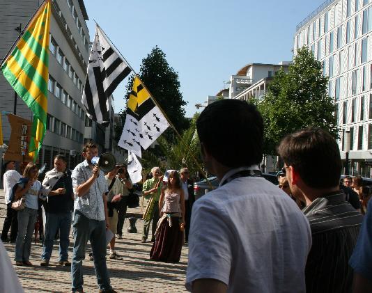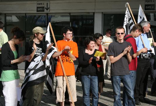 Accompagnés de plusieurs conseillers municipaux de la ville de Nantes, les manifestants l\'ont crié haut et fort « Droits de l\'Homme et Démocratie made in ligérie, c\'est du pipeau ! ». De nombreux tracts et documents on été distribués et plusieurs intervenants internationaux du forum se sont joints à nous. Ils ont pu nous confier que « la France prompte à donner des leçons démocratie et de droits de l\'Homme aux autres pays, en avait visiblement à recevoir ».