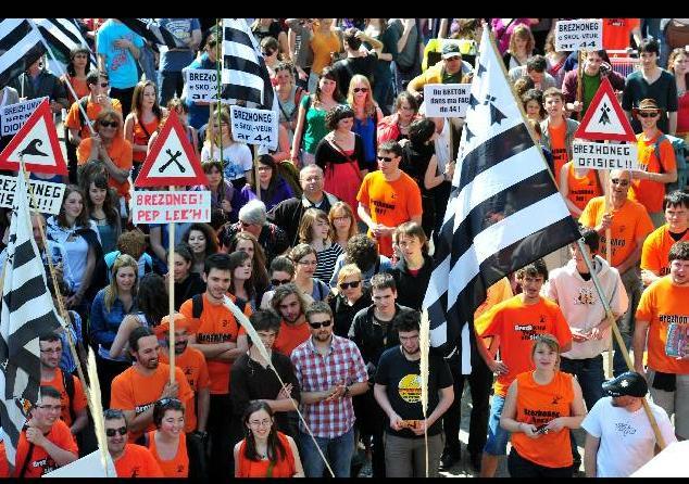 Ar vanifestadeg e Kemper bloaz \'zo a oa evit gwerzhañ hor mouezhioù en eskemm eus promesaoù toull a-berzh ar frank-mason PSF Jean-Yves Urvoas. Hennezh a zo c\'hwen en e loeroù bremañ.