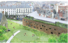 Musée Dobrée. Le bâtiment situé rue Voltaire (au fond) sera réhabilité Projet équipe Dominique Perrault. Janvier 2010. Image de synthèse cop. DPA/Adagp.