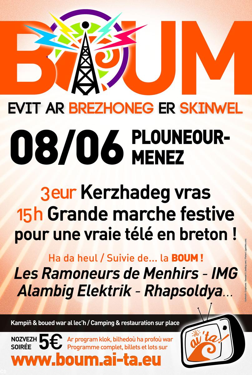 Le collectif Ai'ta ! pour la défense et la promotion de la langue bretonne organise un grand rassemblement festif et militant le 8 juin 2014 dans les Monts d'Arrée à PLOUNEOUR-MENEZ afin d'exiger la création d'une chaîne de télévision donnant toute sa place à notre langue et à ses locuteurs et diffusée sur l'ensemble des cinq départements bretons.