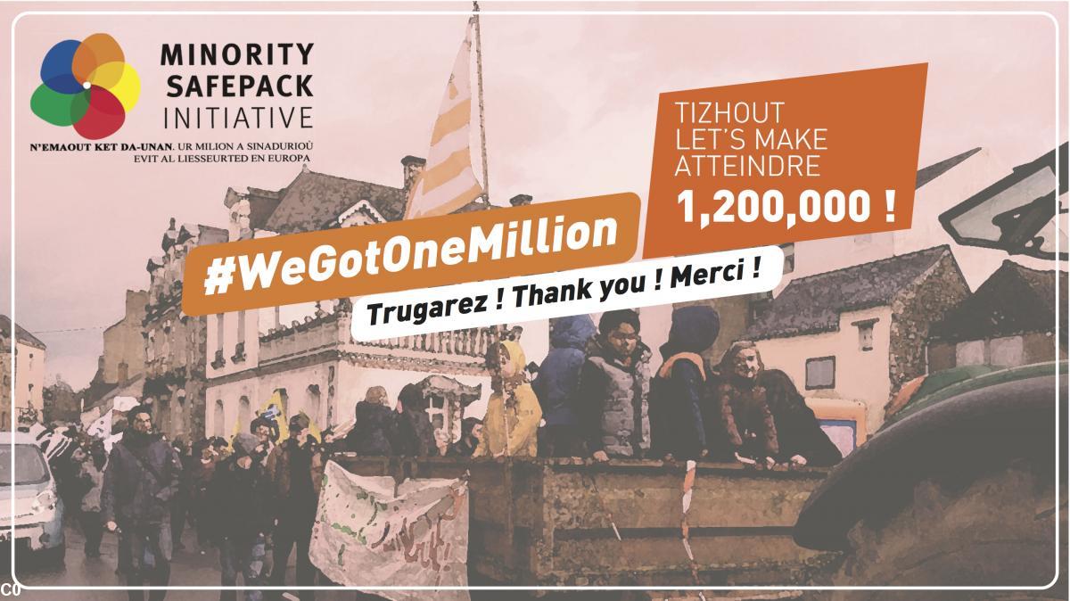 Ouzhpenn 1,100,000 skoazell a zo d'an 2 a viz Ebrel ! Met evit ma vo talvoudus #MinoritySafepak eo ret mont dreist d'ar million ha tizhout 1,200,000 skoazell .