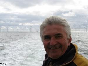- Gilles Denigot devant un champ d'éoliennes en mer au Danemark. Photo du site de la liste. Présentation à la presse de la liste Choisir nos régions et réunifier la Bretagne.