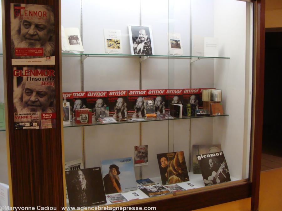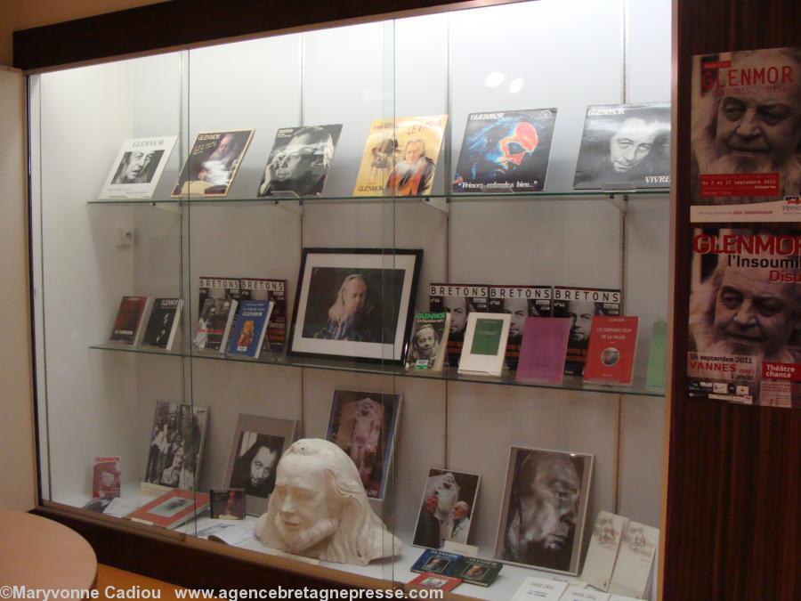 - Une partie de l\'exposition sur Glenmor dans l\'escalier. À droite une photo de la foule à ses obsèques.