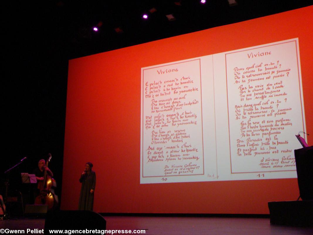 Étaient projetées des photos et vidéos de la vie de Glenmor, notamment la venue de Léo Ferré chez lui à Glomel ; ils ont se sont produits ensemble en concert en France.