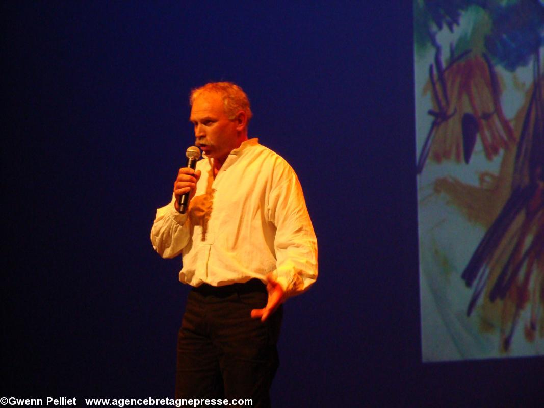 Hier soir au théâtre de Cornouaille avait lieu un hommage à Glenmor, le spectacle Glenmor l'Insoumis, Glenmor Disuj.