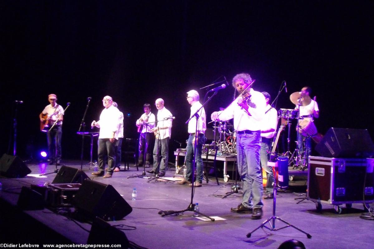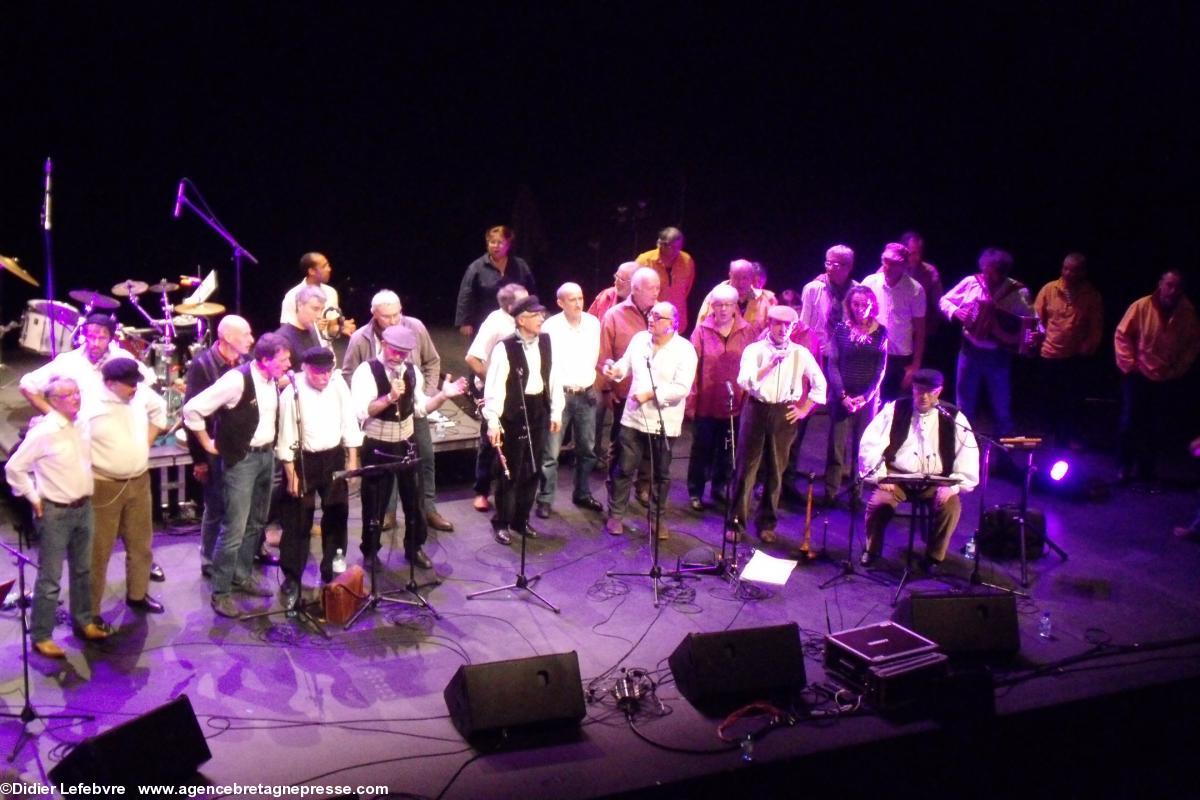 bombarde, instruments traditionnels déchaînent le public, enthousiaste. Pour conclure, repris en choeur par tous, Jean-François de Nantes, ce fameux gabier sur la fringante (Oh mes bouées!!!) qui n'est pas près d'oublier sa fin de campagne, après vingt mois de course. Le public peine à mettre les voiles. Sur scène, les quatre groupes l'ont bien compris, qui se retrouvent pour un final mémorable.