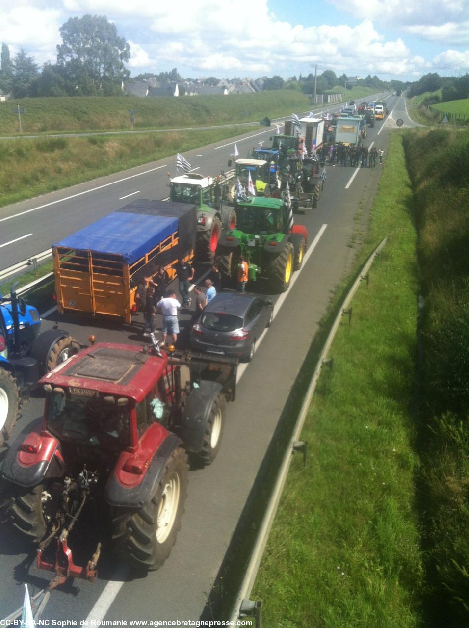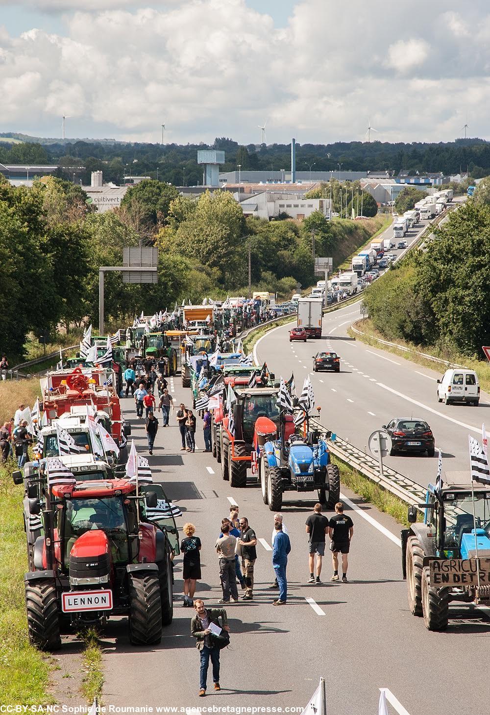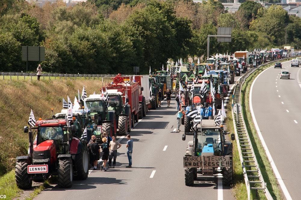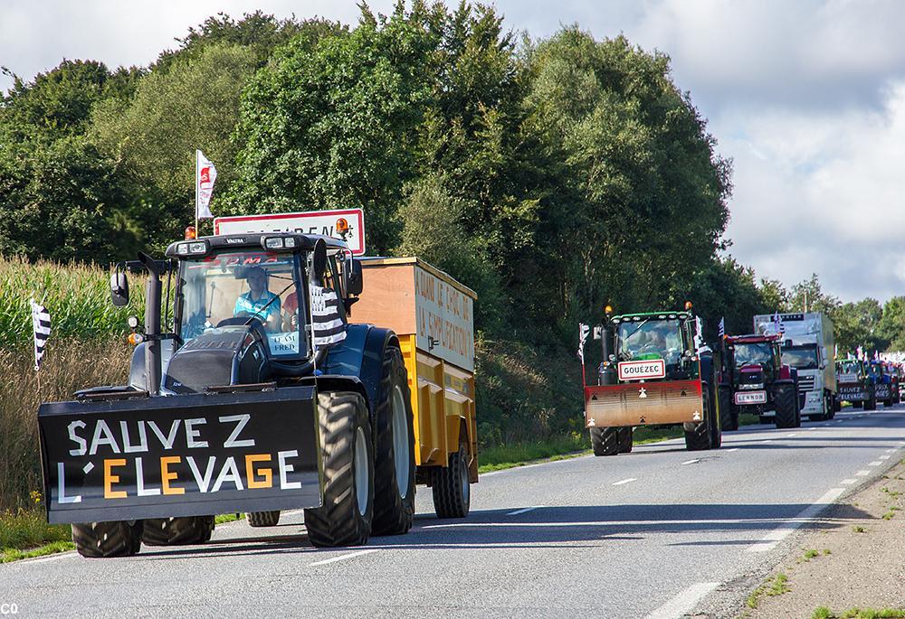 La grande manifestation des agriculteurs, à l'échelon national pour la première fois depuis le début de la crise du porc, a débuté ce matin à 8 heures à la pointe Saint-Mathieu. Les agriculteurs du centre Bretagne rejoignent en ce moment à Guingamp le convoi du Finistère dont les 60 tracteurs partis ce matin de la pointe Saint-Mathieu. La direction du cortège est vers la ville de Caen en Normandie, puis Paris. Les départements du sud de la Bretagne et les Vendéens passeraient, eux, par Rennes selon les sources d'ABP. Environ 1 000 engins agricoles ou plus devraient arriver sur les périphériques de Paris en fin de journée le 3 septembre.