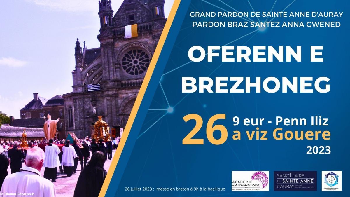 Dans le cadre du grand pardon de Sainte Anne d’Auray, ne manquez pas la messe en langue bretonne qui sera célébrée à 9h le 26 juillet à la basilique. Cet office célébré par le Père Ivan Brient, vicaire général du Diocèse de Vannes, sera accompagné de l’orgue, la bombarde, de la harpe celtique ou encore du uillean pipe.