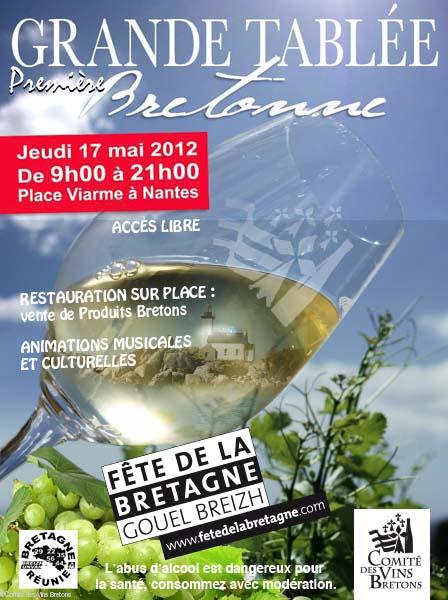 Au coeur de Nantes, dans le cadre de la saint Yves, nommée aussi « Fête de la Bretagne », le Comité des Vins Bretons des vignerons bretons indépendants organise avec l'association Bretagne Réunie, une grande tablée gourmande.