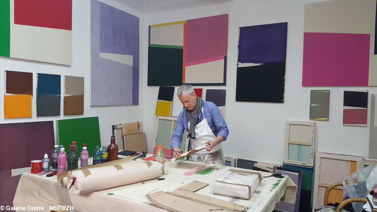 Nouveau venu parmi les artistes que représente la galerie Oniris depuis 2014, Guillaume Moschini aborde sans état d’âme la question de son métier de peintre. Début 2018, il présente à Rennes une seconde exposition personnelle d’œuvres récentes intitulée “Strict et léger”