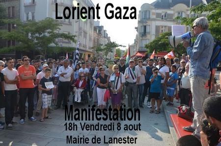 À l'appel de : AFPS (Association France Palestine Solidarité du pays de Lorient), Mouvement de la Paix 56, UD CGT56, PCF56, MRAP56, CRISLA, ASFG5.56 (Association des sympathisants du front de gauche de la 5° circonscription du Morbihan), PG (Parti de Gauche 56), FSU 56, Comité de Jumelage d'Hennebont, Syndicats SOLIDAIRES, SUD Education, EELV Pays de Lorient, UJFP (Union Juive Française pour la Paix), un groupe de jeunes citoyens du Pays de Lorient, Association culturelle turque du Pays de Lorient, ACIL (Association culturelle islamique du pays de Lorient). NPA56 et NPA Quimperlé "