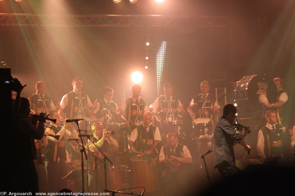 Louise Ebrel, la chanteuse bretonnne de kan ha diskan, fille d'une des soeurs Goadec était l'invitée de Red Cardell et du Bagad Kemper hier soir sur la scène Gradlon. Si la temperature avait baissé depuis mercredi dernier, ca a chauffé fort sous le chapiteau. Un débit de plusieurs mégawatts et une sono du tonnerre en plus de la puissance naturelle d'un bagad. On pouvait sentir le souffle des baffles dans les premiers rangs. Les Quimpèrois n'avaient pas besoin de tickets pour écouter d'autant plus que l'espace Gradlon est une immense tente ouverte à tous les vents et équivaut à un concert en plein air. Pour ses 80 ans, Louise Ebrel aura des souvenirs décoiffants !