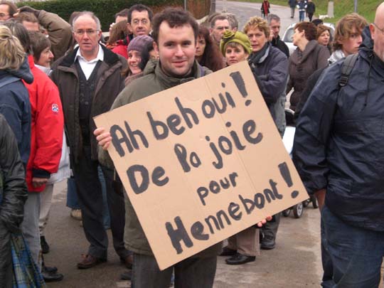 Face à l'urgence de la situation, l'Association pour la Réhabilitation de l'Abbaye de la Joie (SARAH) avait convoqué ce rassemblement de protestation afin d'amener les élus à prendre leurs responsabilités dans ce dossier. Malgré le temps, plus de 300 personnes ont pris part à ce rendez-vous dont des représentants de la quinzaine d'associations qui s'opposent à cette spoliation du patrimoine hennebontais ; à noter la présence d'élus et de candidats aux prochaines élections.