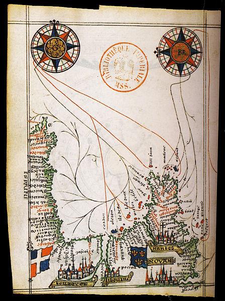 1453, 17 juillet, bataille de Castillon, à la fin de la guerre de cent ans, une flotte combinée française, espagnole et bretonne assiège Bordeaux en bloquant l’embouchure de la Gironde. "François (duc) de Bretagne fit équiper quelques vaisseaux pour envoyer par mer joindre l’armée du roi." Bertrand d’Argentré. A noter que les troupes bretonnes jouèrent à Castillon un rôle majeur dans la défaite anglaise.