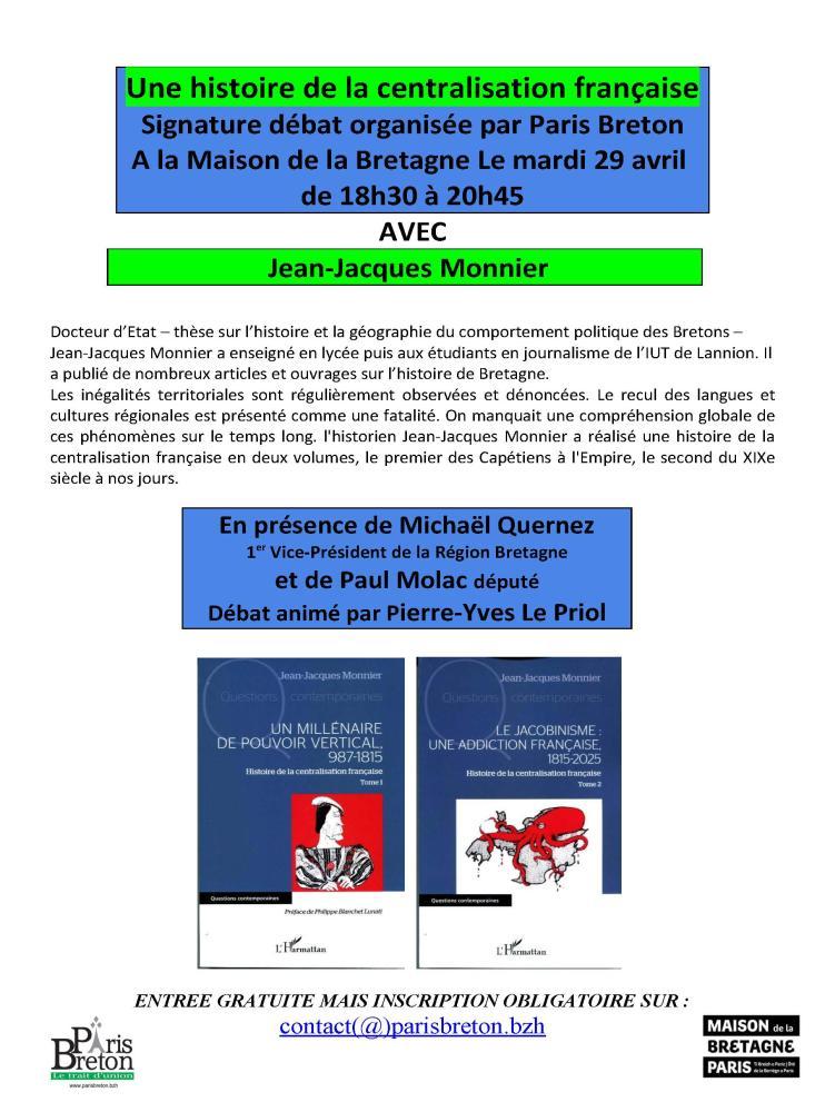 Signature débat autour du livre de Jean-Jacques Monnier en présence de Michaël Quernez, 1er Vice-président de la Région Bretagne et de Paul Molac, député - débat animé par Pierre-Yves Le Priol