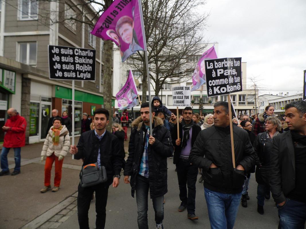 Les Kurdes étaient présents dans les différentes manifestations organisées partout en France, mais aussi à Istanbul, en Europe et dans le monde pour la défense de la liberté d'expression, après l'assassinat des journalistes de Charlie Hebdo et les attentats et prises d'otages survenus à Paris entre le 7 et le 9 janvier. On a compté jusqu'à quatre millions de personnes lors de ces rassemblements.130 pays étaient représentés et une quarantaine de chefs d'Etat et de gouvernement étaient présents, autour de François Hollande, à la grand marche organisée à Paris le 11 janvier. Ces événements tragiques se sont passés au moment où toute la communauté kurde d'Europe et tous les amis du peuple kurde se recueillaient en mémoire des trois militantes kurdes assassinées le 9 janvier 2013 à Paris par l'Etat turc, ses services secrets (MIT) étant chargés de faire exécuter la basse besogne : les experts judiciaires ont confirmé l'authenticité de l'enregistrement de la conversation dans laquelle le présumé assassin, interpellé sur les lieux du crime et détenu depuis deux ans à la prison de Fresnes, faisait valider ses plans d'assassinat par ses officiers traitants du MIT.