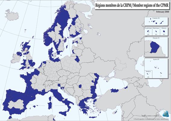 Interlocutrice des institutions européennes et des gouvernements nationaux, la CRPM a été créée en 1973 à l'initiative de la Région Bretagne, pour que les besoins et les intérêts de ses Régions membres, éloignées du centre de l'Europe, soient mieux pris en compte dans toutes les politiques qui ont un impact territorial. Issues de 28 pays, les 161 Régions membres représentent aujourd'hui près de 200 millions d'habitants. Elles coopèrent sur des projets concrets pour valoriser leurs atouts, notamment maritimes, et améliorer leur accessibilité. Elles oeuvrent en faveur d'une politique régionale européenne forte, d'un développement harmonieux de tous les territoires, et de la mise en place d'une politique maritime intégrée qui contribue à la croissance économique de l'UE. Dirigé par Eleni Marianou, le secrétariat général de la CRPM est basé à la fois à Rennes, siège historique de la CRPM, et à Bruxelles.