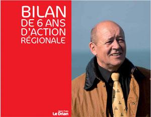Lors de sa conférence de presse tenue à Rennes la semaine dernière, Jean Yves Le Drian a distribué le bilan de la majorité socialiste qui dirige la région depuis 2004. Le document de 29 pages liste tous les investissements et les accomplissements du Conseil Régional de la région Bretagne sous la houlette de la majorité socialiste et de ses alliés.