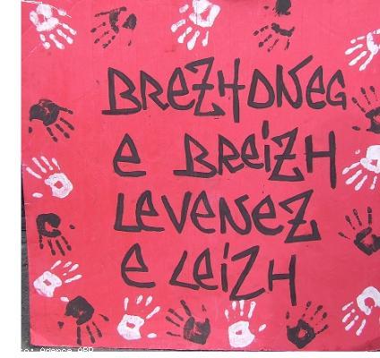« Ai 'ta ! », le groupe orange de jeunes militants pour la langue bretonne, dont la première section fut créée en mars 2005 dans le Trégor, et qui en compte maintenant trois autres, à Rennes, Nantes et en Basse Cornouaille, arborait une banderole qui ne mâchait pas ses mots... bretons [photo1]. La traduction française ''soft'', « evel ma 'vez laret e saozneg flour », ne pouvait pas choquer, elle ! http://ai.ta.free.fr/kevrenn.htm